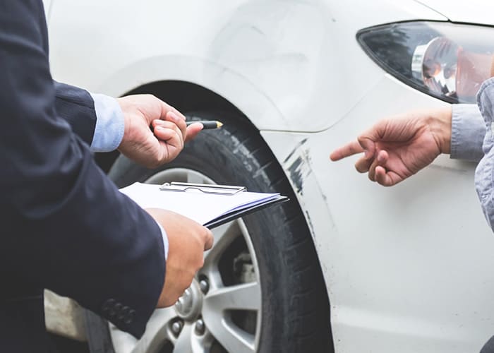 ・車とのすれ違いの時に電柱に擦って、車の側面全部に傷とヘコミができた